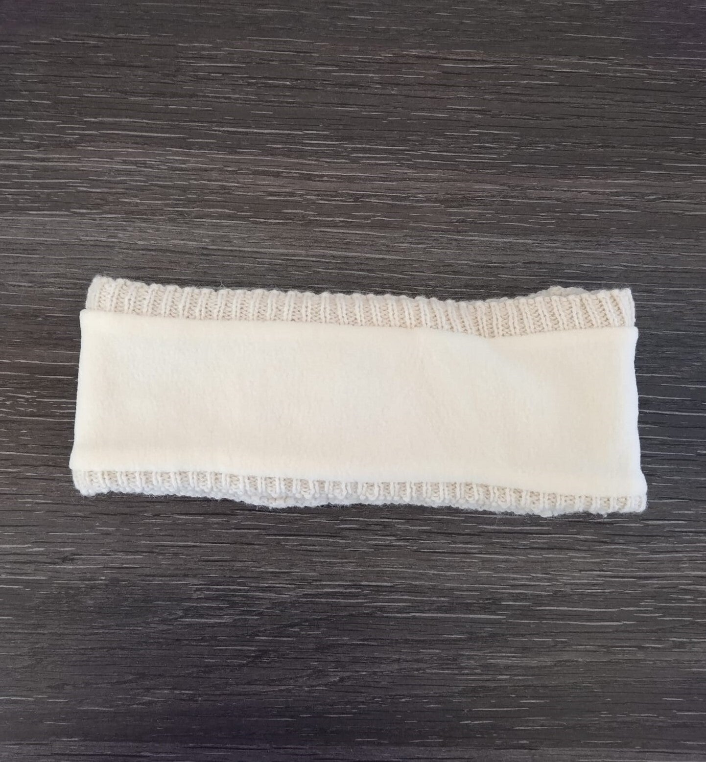 Hoofdband met kabelmotief en fleece voering creme